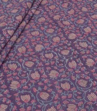 Grape Purple Bagru Handblock Printed Cotton Fabric