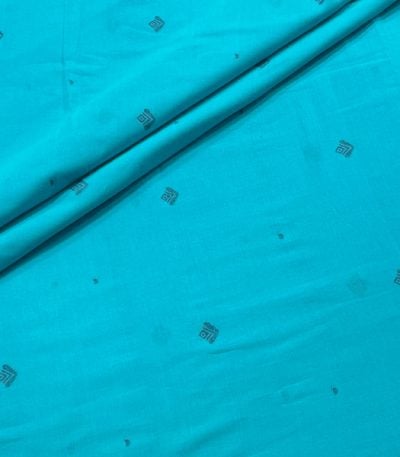 Sky Blue Woven Design Flowy HandLoom Pure Soft Cotton Fabric