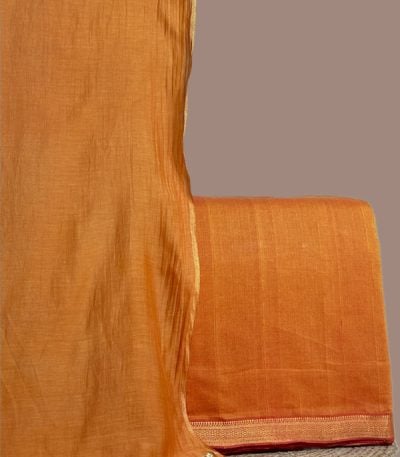Orange – 2pc Luxe CottonSilk Dupatta and Mangalgiri Zari Border Handwoven Pure Cotton Set