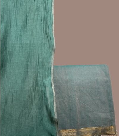 Green – 2pc Luxe CottonSilk Dupatta and Mangalgiri Zari Border Handwoven Pure Cotton Set