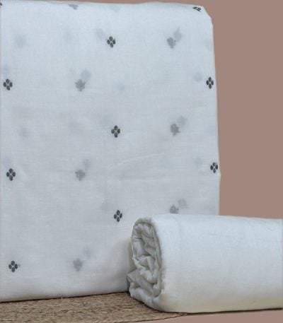 White – 2pc Handloom Woven Design Cotton Top and Handloom Soft Cotton Bottom Fabric Set