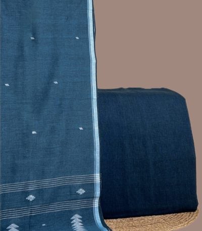 Blue – 2pc Handloom Cotton Dupatta and Handloom Soft Cotton Top Fabric Set