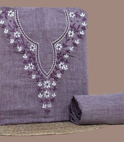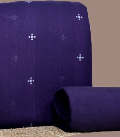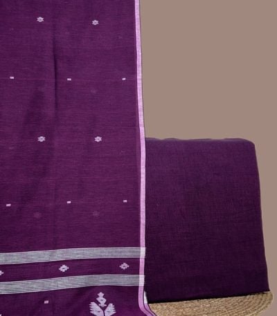 Purple – 2Pc Handloom Woven Neck Design Soft Cotton Top(3m) Bottom(2.5m) Fabric Set