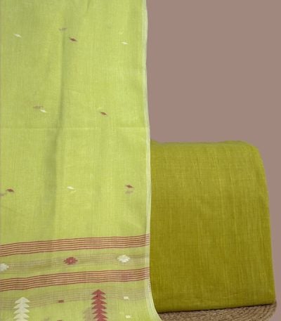 Green – 2pc Handloom Cotton Dupatta and Mangalgiri Cotton Top Fabric Set