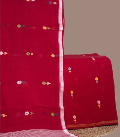 Red – 2pc Handloom Cotton Dupatta and Handloom Woven Design Top Fabric Set