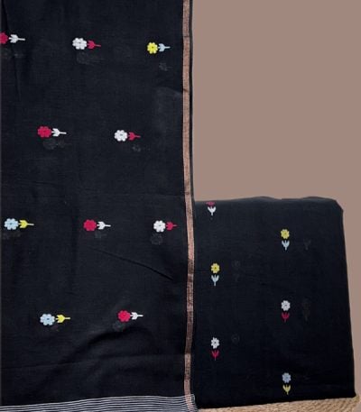 Black – 2pc Handloom Cotton Dupatta and Handloom Woven Design Top Fabric Set