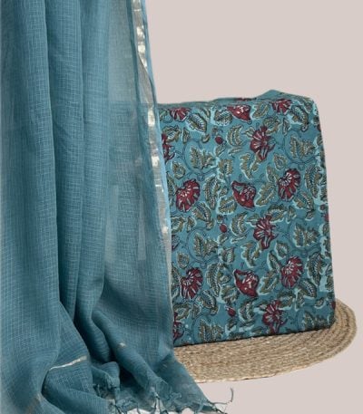 2.5mtr Each – Handloom Soft Cotton Dupatta with HandBlock Printed Pure Soft Cotton Top and Bottom Fabric Set
