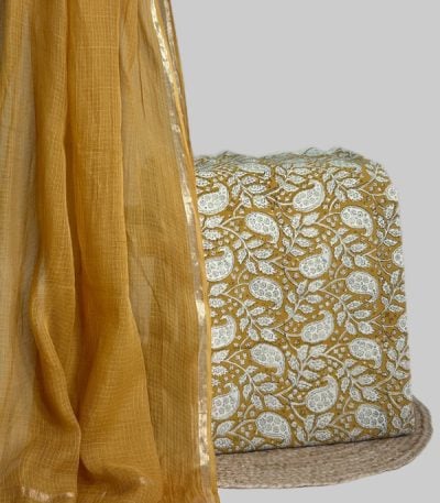 2.5mtr Each – Kota Doria Dupatta with Bagh Handblock Pure Cotton Fabric Set