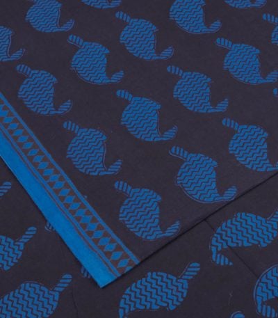 Ocean Deep Blue Handblock Bagh Printed Cotton Fabric