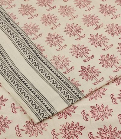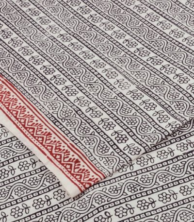 Natural White Handblock Bagh Printed Cotton Fabric
