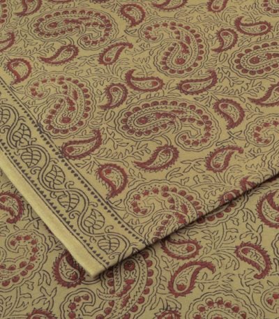 Khaki Brown Handblock Bagh Printed Cotton Fabric