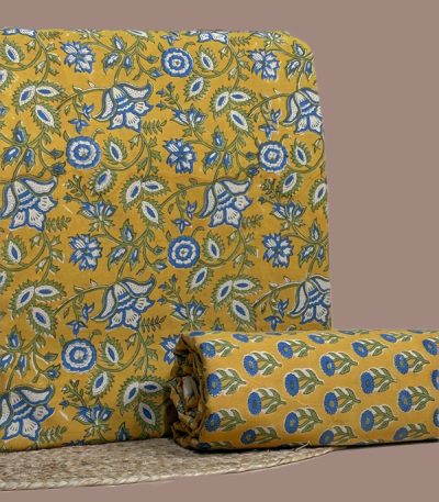 Yellow – 2pc Pure Soft Cotton Blockprinted Top and Bottom Fabric Set