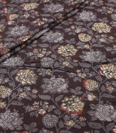 Espresso Brown Handblock Bagh Printed Cotton Fabric