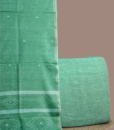 Green – 2pc Handloom Cotton Dupatta and Handloom Soft Cotton Top Fabric Set