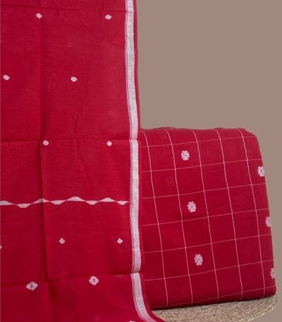 Red – 2pc Handloom Cotton Dupatta and Handloom Woven Design Top Fabric Set