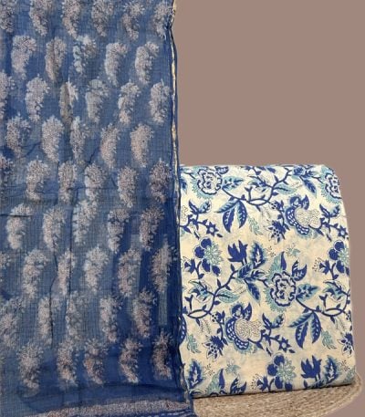 Beige – 2pc Kota Doria Dupatta and Pure Soft Cotton Blockprint Top Fabric Set