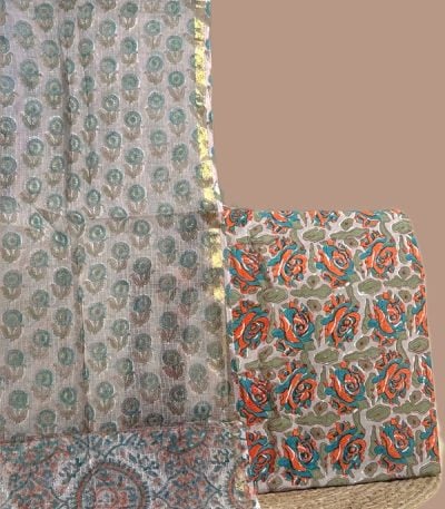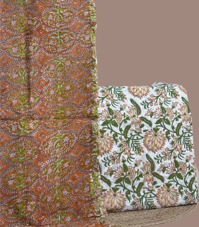 Brown – 2pc Kota Doria Dupatta and Pure Soft Cotton Blockprint Top Fabric Set