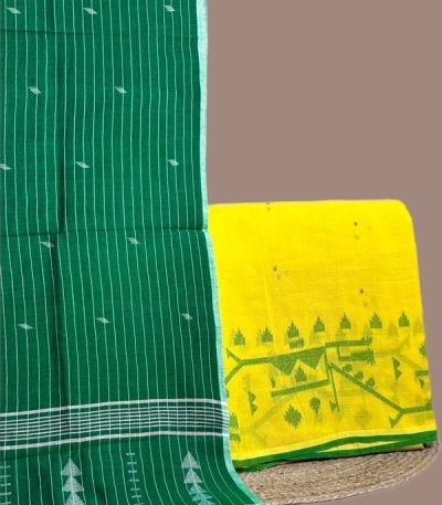 Yellow – 2pc Handloom Cotton Dupatta and Jamdani Intricate Woven Border Top Fabric Set