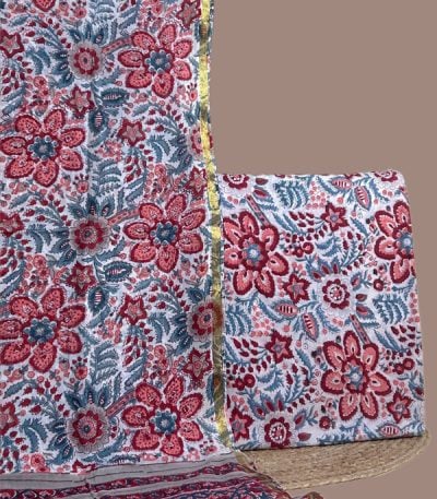 Blue – 2pc Blockprinted Cotton Dupatta and Pure Soft Cotton Top Fabric Set