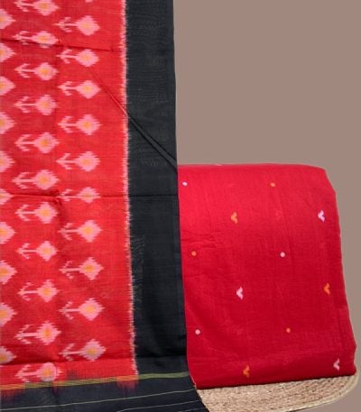 Red – 2pc Ikkat Cotton Dupatta and Handloom Woven Motif Cotton Top Fabric Set