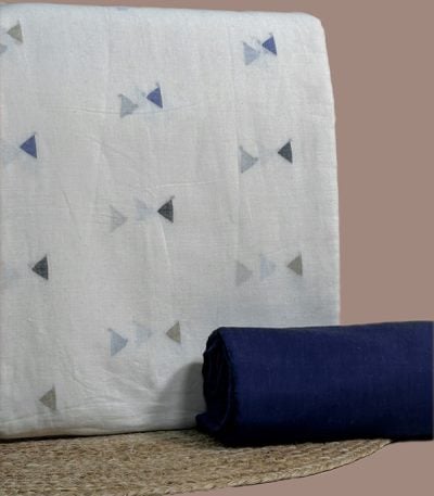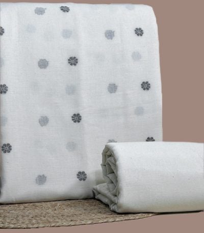 White – 2pc Handloom Woven Design Cotton Top and Handloom Soft Cotton Bottom Fabric Set