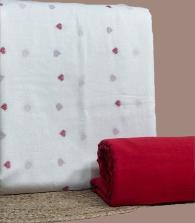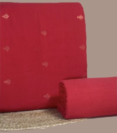 Red – 2pc Handloom Zari Woven Design Cotton Top and Handloom Soft Cotton Bottom Fabric Set