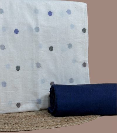 Blue – 2pc Jamdani Intricate Woven Cotton Top and Handloom Bottom Fabric Set