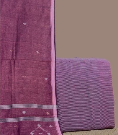 Purple – 2pc Handloom Cotton Dupatta and Handloom Woven Design Top Fabric Set