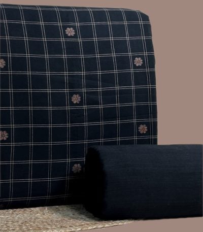 Black – 2pc Handloom Woven Design Cotton Top and Handloom Soft Cotton Bottom Fabric Set