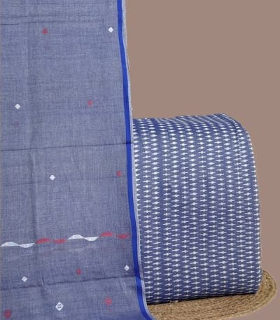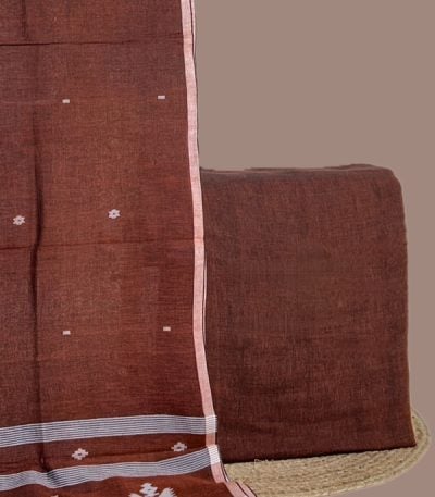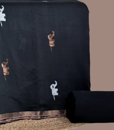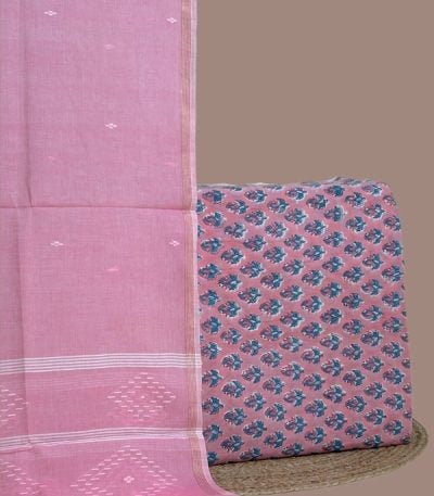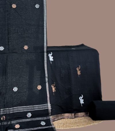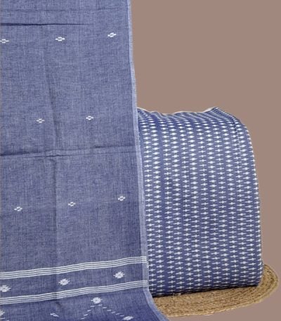 3Pc Handloom Cotton Dupatta with COTTONSILK Woven Motif Top & Handloom Soft Cotton Bottom Fabric Set