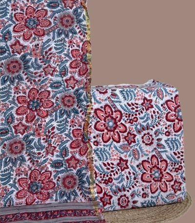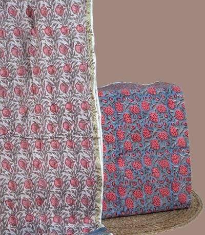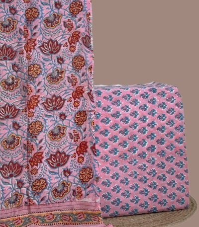2Pc Blockprinted Cotton Dupatta and Pure Soft Cotton Top Fabric Set