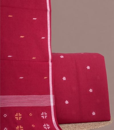 Red – 2pc Handloom Cotton Dupatta and Handloom Woven Design Top Fabric Set