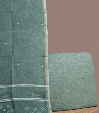 Green – 2pc Handloom Cotton Dupatta and Handloom Soft Cotton Top Fabric Set