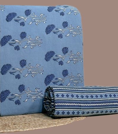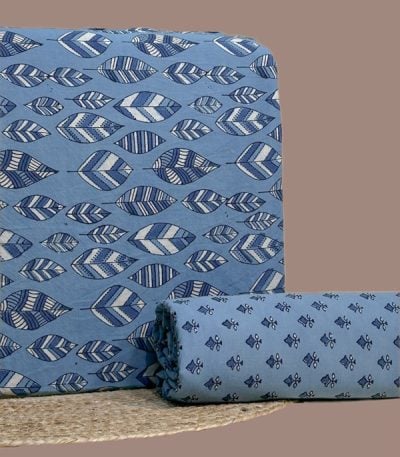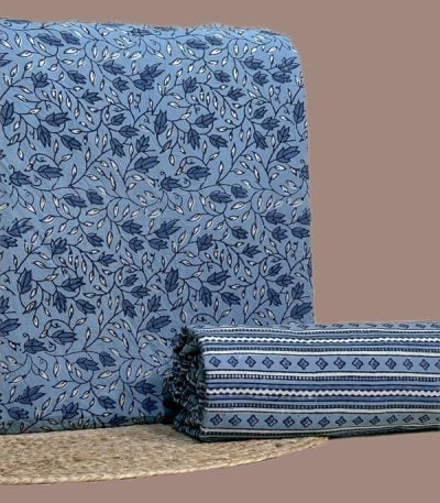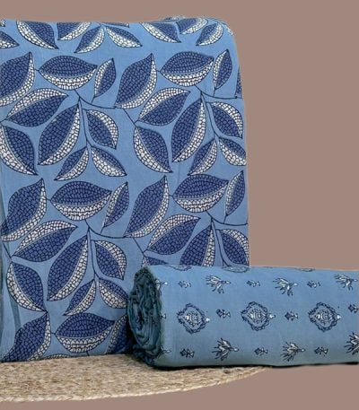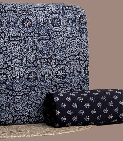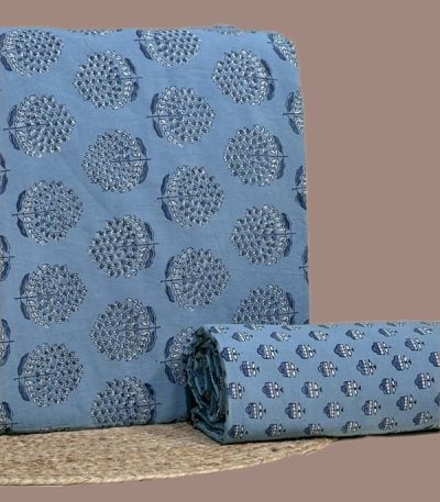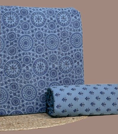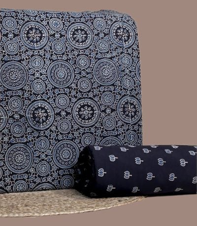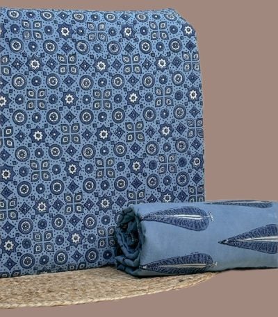 Blue – 2pc Ajrakh HandCrafted Cotton Top and Bottom Cotton Fabric Set