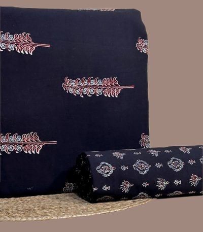 Black – 2pc Ajrakh HandCrafted Cotton Top and Bottom Cotton Fabric Set
