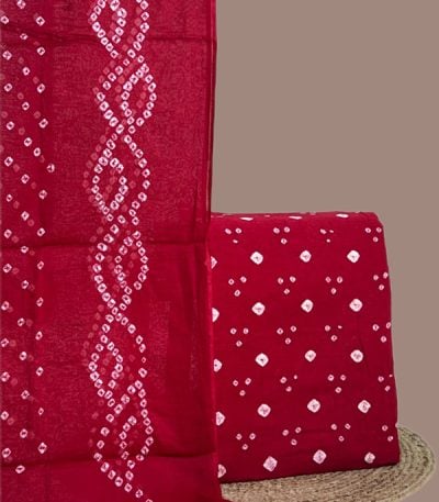 2Pc Bandhani Cotton Dupatta with Cotton Bandhani Top Fabric Set
