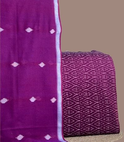 Purple – 2pc Handloom Cotton Dupatta and Handloom Ikkat Top Fabric Set