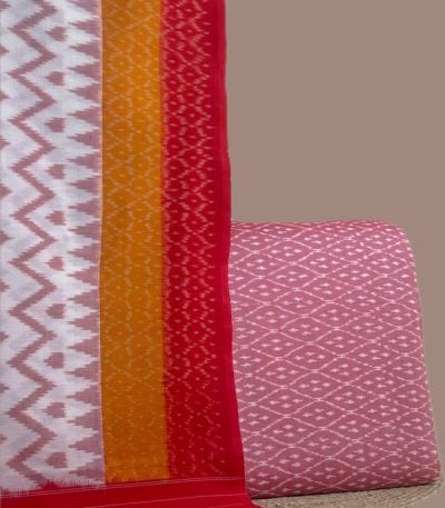Pink – 2pc Ikkat Cotton Dupatta and Handloom Soft Ikkat Cotton Top Fabric Set