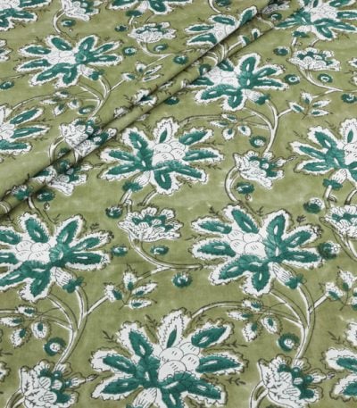 Olive Green Pure Soft Cotton HandBlock Printed Fabric