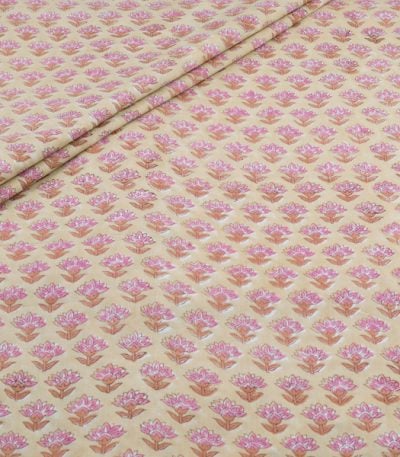Soft Blush Pink Pure Soft Cotton HandBlock Printed Fabric