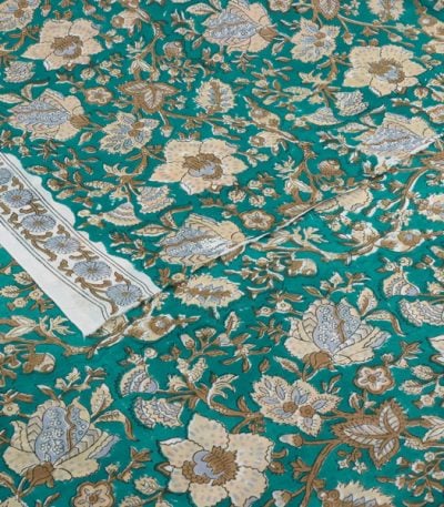 Muted Teal Green Pure Soft Cotton HandBlock Printed Fabric