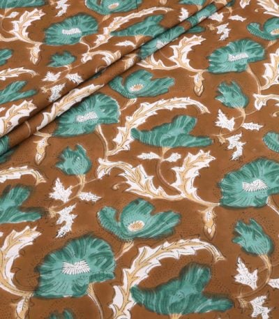 Warm Beige Pure Soft Cotton HandBlock Printed Fabric