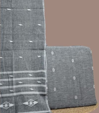 Gray – 2pc Handloom Cotton Dupatta and Handloom Woven Design Top Fabric Set
