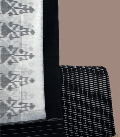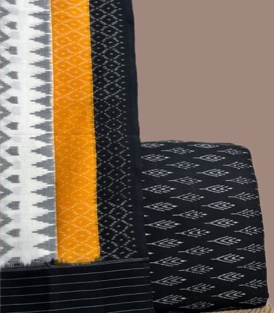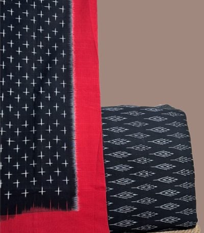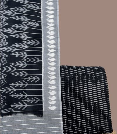 Black – 2pc Ikkat Cotton Dupatta and Handloom Soft Ikkat Cotton Top Fabric Set