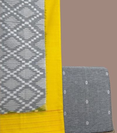 Gray – 2pc Ikkat Cotton Dupatta and Handloom Woven Motif Cotton Top Fabric Set