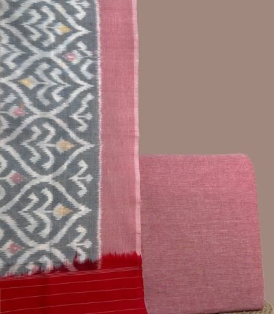 Pink – 2pc Ikkat Cotton Dupatta and Handloom Soft Cotton Top Fabric Set