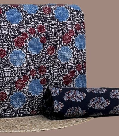 Black – 2pc Ajrakh HandCrafted Cotton Top and Bottom Cotton Fabric Set