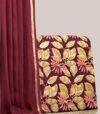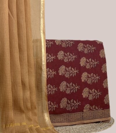 Maroon – 2pc Kota Doria Dupatta and Pure Soft Cotton Blockprint Top Fabric Set