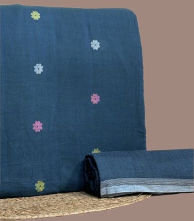 Blue – 2pc Handloom Woven Design Cotton Top and Handloom Soft Cotton Bottom Fabric Set