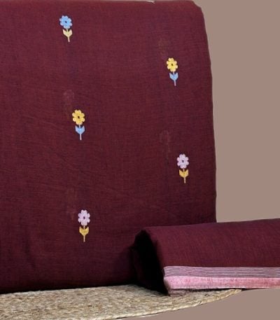 Maroon – 2pc Handloom Woven Design Cotton Top and Handloom Soft Cotton Bottom Fabric Set